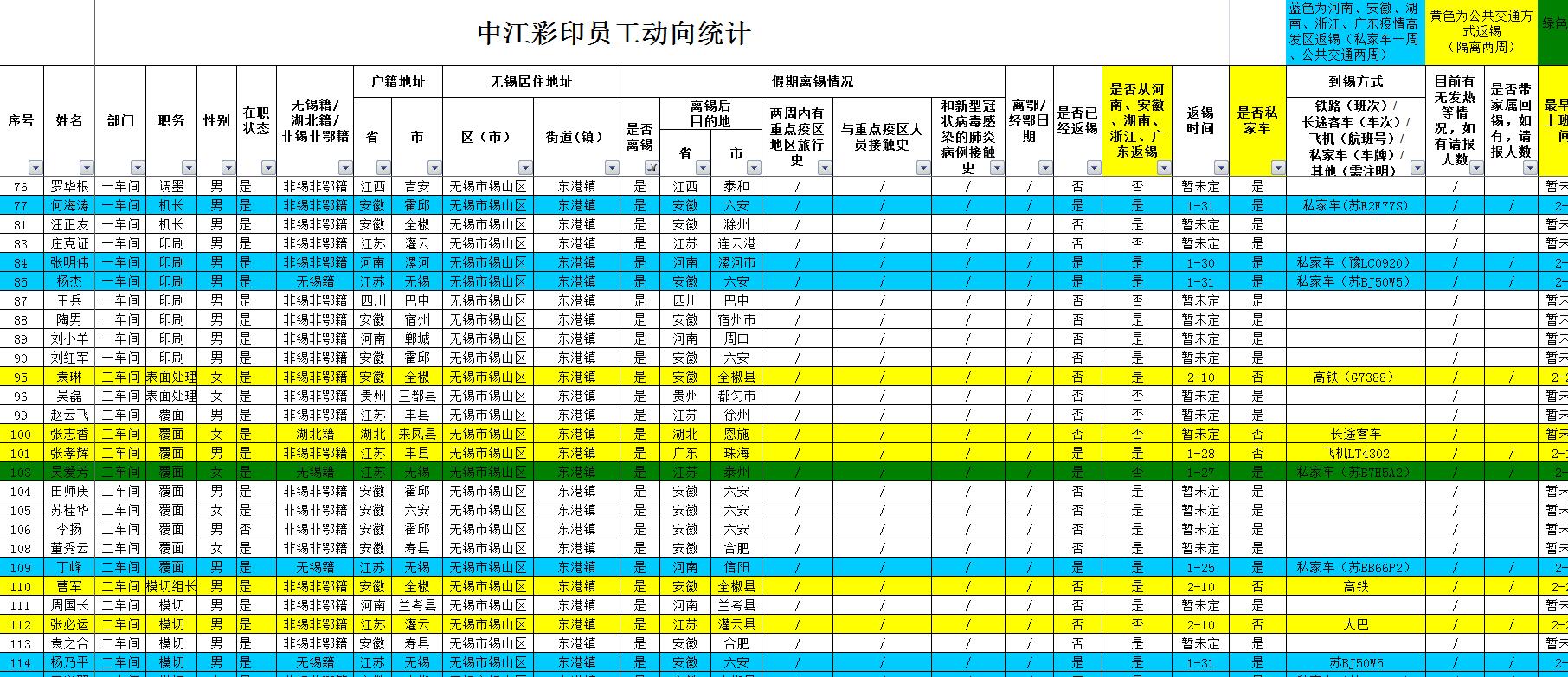 未返程人員及時匯報返程方式和時間,對接當(dāng)?shù)亟煌顩r,做好實時統(tǒng)計更新動向。